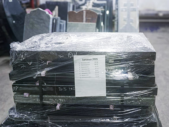 Когда памятник изготовлен. Отправляем фото и видео (по запросу) готового памятника. Бесплатно храним на нашем складе до момента установки.